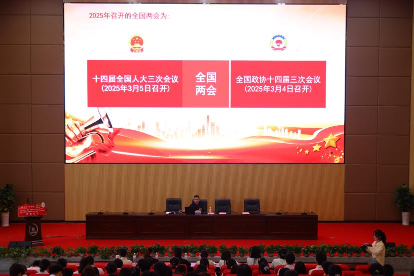 为深入学习贯彻2025年全国两会精神,凝聚青春奋进力量,4月9日,党委委员、副院长谢光杰在图书馆第一学术报告厅为学校第十三期“青年马克思主义者培养工程”大学生骨干培训班学员及2025年团学干部讲授《聚焦两会——深入学习贯彻2025年全国两会精神》专题思政课。