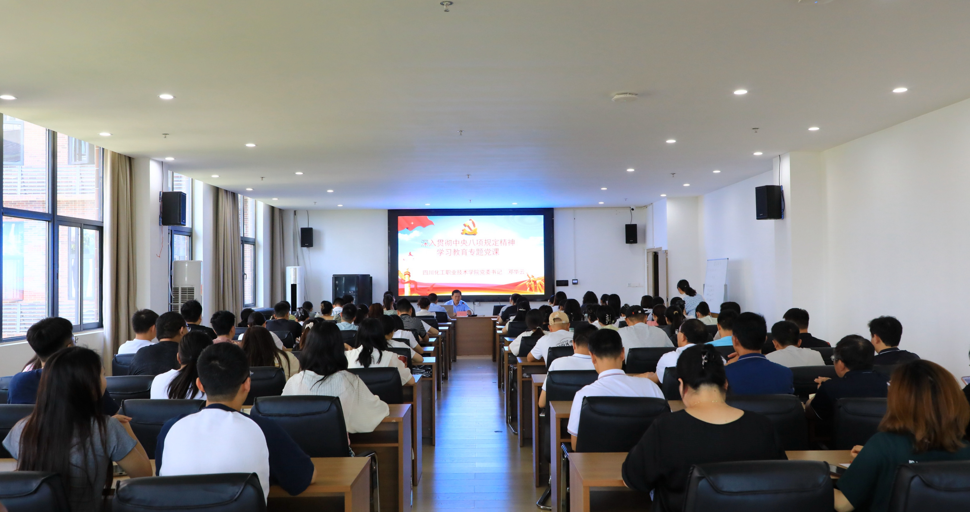 为深入贯彻习近平总书记关于党的自我革命的重要思想和中央八项规定精神,持续推进党的作风建设,2025年6月11日,学校党委书记邓华云以“锲而不舍贯彻中央八项规定精神,推进新时代党的作风建设”为题,为马克思主义学院直属党支部、基础部直属党支部、应用化工学院党总支全体党员上了一场深刻的教育党课。