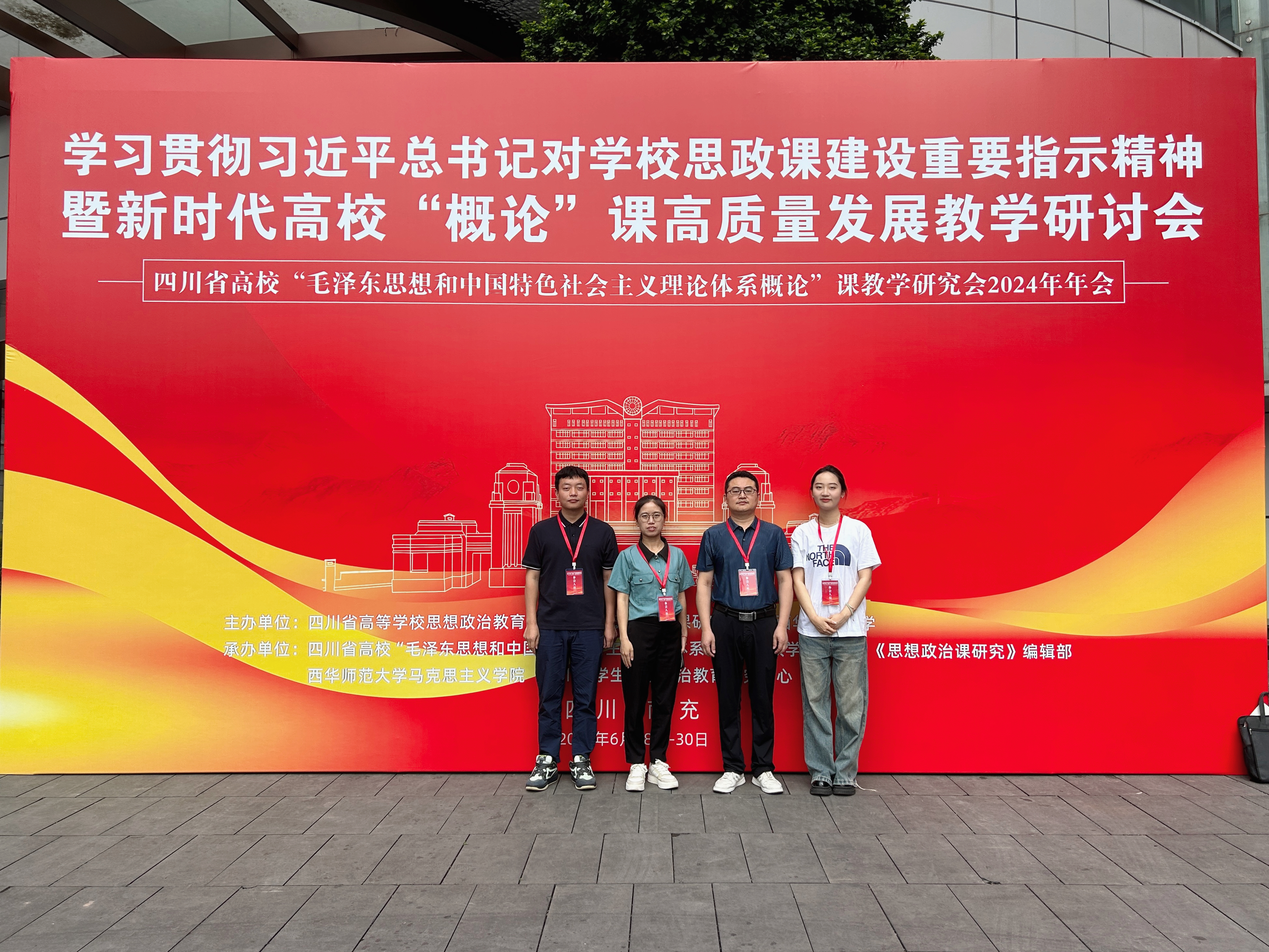 为深入学习贯彻习近平总书记对学校思政课建设重要指示精神,深化高校“毛泽东思想和中国特色社会主义理论体系概论”课程改革创新,全面提升思政课教学质量,开创新时代思政教育新局面,四川省高校“毛泽东思想和中国特色社会主义理论体系概论”课教学研究会于2024年6月28日至6月30日在西华师范大学召开,我校马克思主义学院教师廖寻真、陈有良、刘临君、朱玉容老师参加此次年会。