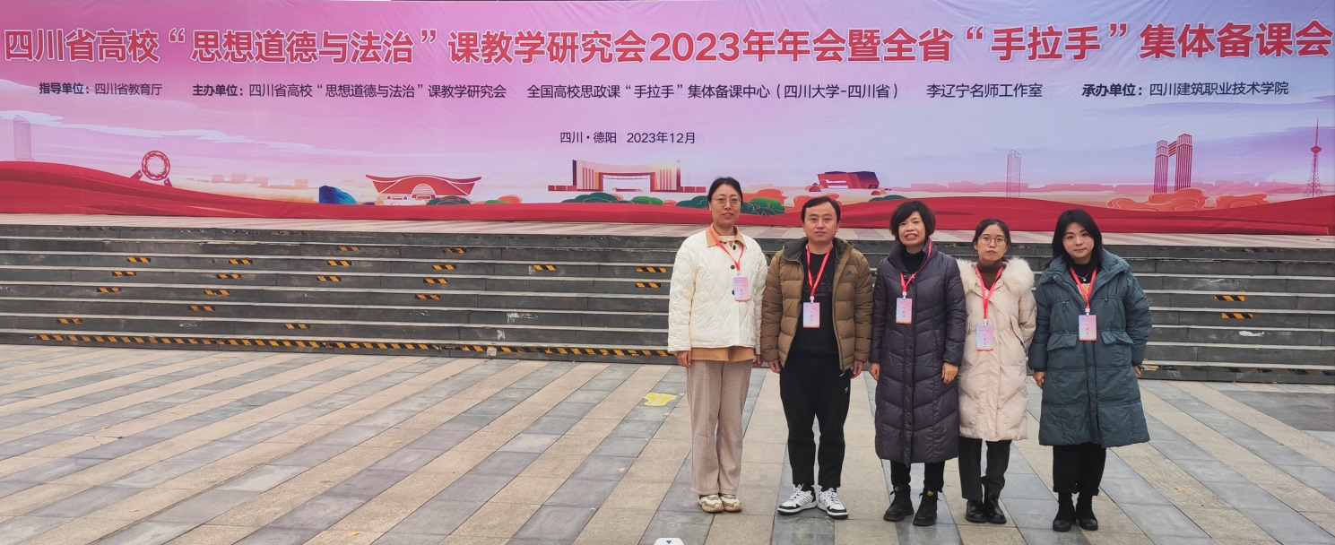 四川省高校“思想道德与法治”课教学研究会2023年年会暨全省“手拉手”集体备课会在德阳举行,本次会议由四川建筑职业技术学院承办。我校马克思主义学院教师5人一行参会。本次会议分四个部分:专家主旨报告、主旨发言及经验交流、教学竞赛、实践活动。
