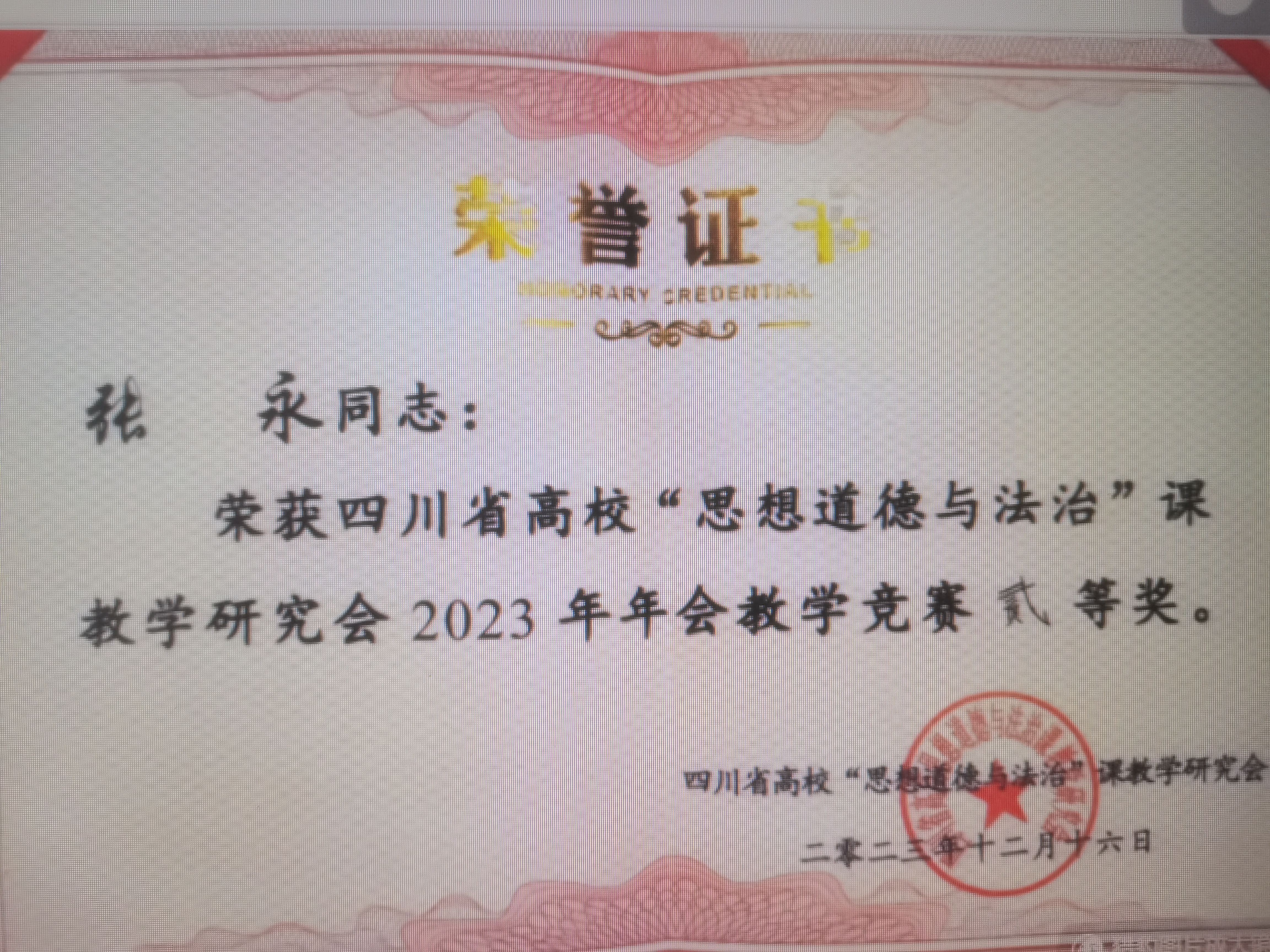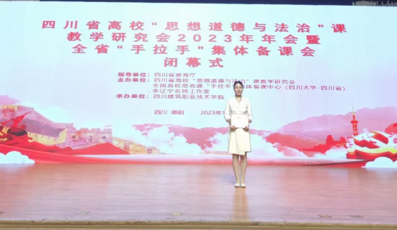 近日,由四川生高校“思想道德与法治”课教学研究会举办的2023年度四川省高校“思想道德与法治”课教学竞赛在四川建筑职业技术学院举行。学校马克思主义学院教师张永凭借扎实的理论功底、丰富的教学经验和突出的临场发挥,从全省高校选手中脱颖而出,荣获全省“二等奖”的优异成绩。