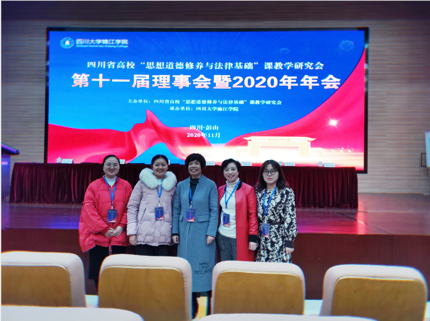 2020年11月28日至29日,四川省高校“思想道德修养与法律基础”课教学研究会第十一届理事会暨2020年年会在四川大学锦江学院举行,来自全省70余所高校从事“思想道德修养与法律基础”课教学的有关院系领导、教师共300余人参加了本次会议。我校马克思主义学院张国蓉、唐晓英、郭真瑞等五位教师参加了此次会议。