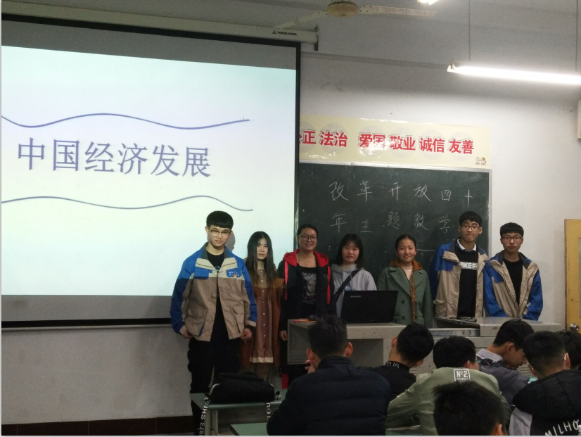 参观结束后,在老师的精心组织和安排下,由学生分组围绕“改革开放40年”这一主题在课堂上进行了交流汇报。汇报交流中同学们分别从政治、经济、社会生活、文化等领域展示了改革开放取得的辉煌成就以及给国家给人民带来的巨大变化。