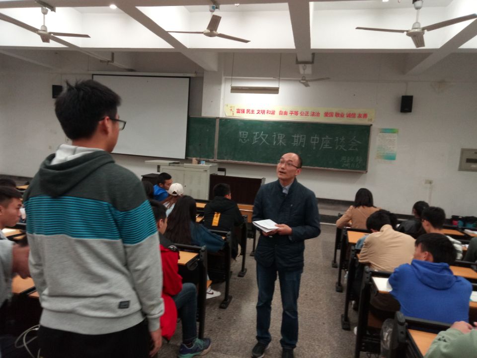 思政课部主任范正平老师讲到,师生交流座谈是学校教学反馈的重要环节,目的是听取同学们对教学、管理等各方面的建议,为进一步提高教学质量奠定基础。座谈会上,来自大一、大二年级的同学踊跃发言,对思政课教师的辛勤培育表示满意,同时也对教学方面存在的问题提出了意见和建议。与会老师认真倾听,详细记录,并针对同学们提出的问题进行了现场解答,同时也希望课代表大会好同学和任课教师的桥梁和纽带作用,一方面严格要求自己,配合教师完成教学环节;另一方面,及时收集、反馈意见建议,教学相长,提高思政课教学效果。