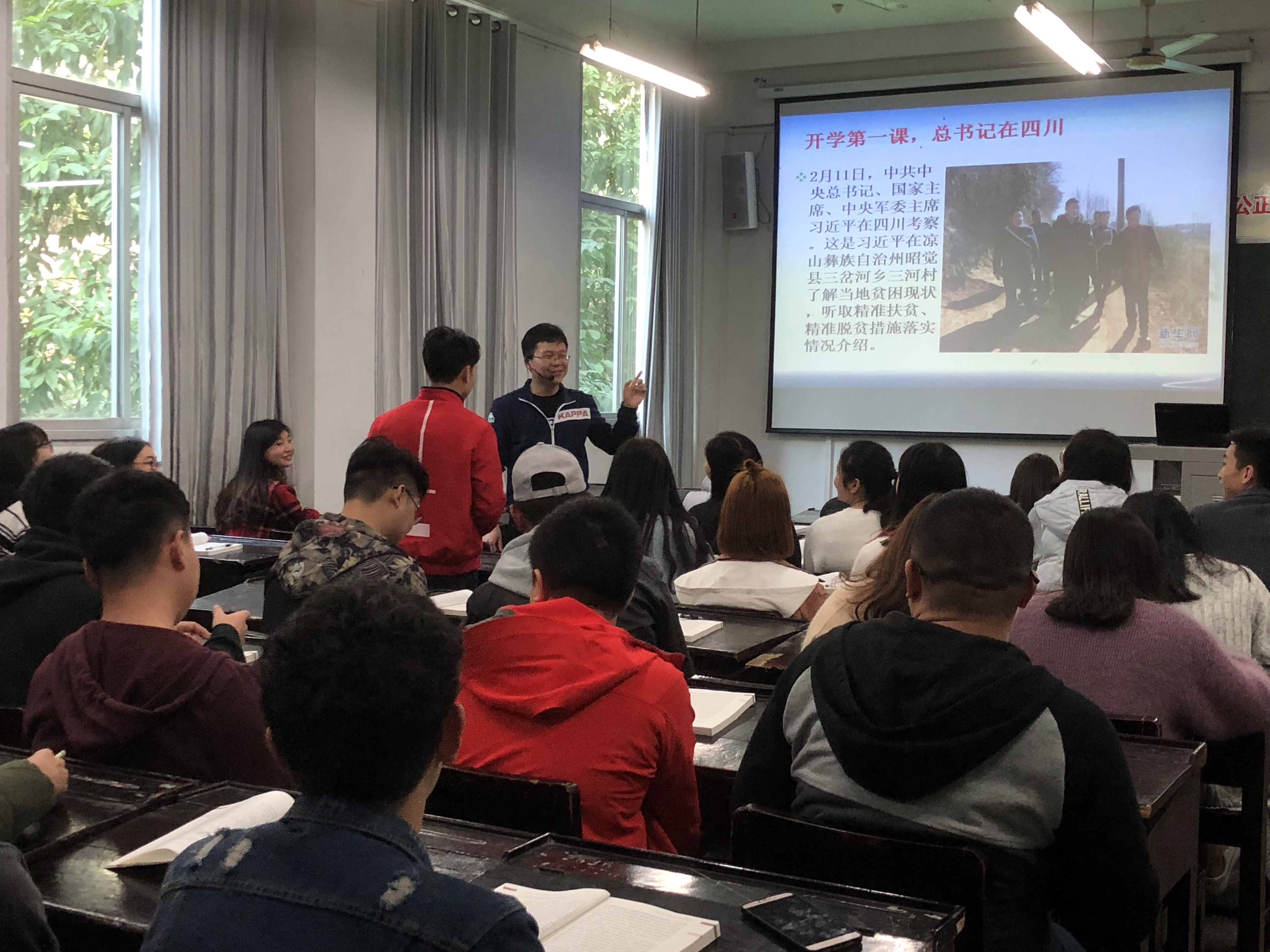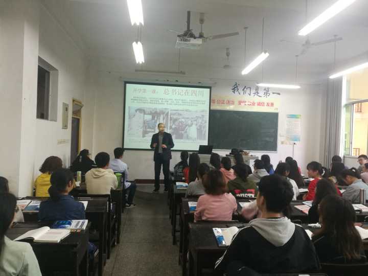 课堂上老师们组织学生观看了习近平总书记来川视察的相关视频,介绍了习近平总书记在四川的时光,并让同学们在课堂上做了分享和交流。通过学习习近平总书记来川视察重要讲话精神,同学们领略了习近平总书记平易近人的领导风格和“以人民为”中心的执政理念,深切感受到了习近平总书记和党中央对四川的高度重视和对全省各族人民的深切关怀,并坚定了对我国打赢精准脱贫攻坚战的决心和信心。