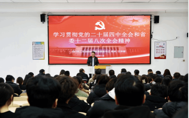 1月6日,学校党委副书记、院长文申柳在护国校区勤学楼A107教室面向机械工程学院学生党支部全体党员、预备党员、入党积极分子以及团学干部等220余人,专题讲授“学习贯彻党的二十届四中全会和省委十二届八次全会精神”思政课。