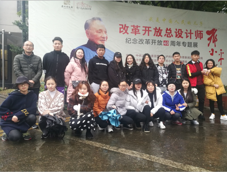 实践教学第一环节首先带领学生到泸州市博物馆参观了专题展《改革开放总设计师——邓小平》。展览集历史性与现实性、思想性与艺术性、时代性与互动性于一体,通过文物、档案文献资料、图片、复原场景、壁画等方式,从“走出广安”、“戎马生涯”、“艰辛探索”、“非常岁月”、“开创伟业”五大部分内容,生动、全面、形象地展示了小平同志光辉而又富有传奇色彩的人生历程,使同学们深受教益。通过讲解人员的细致讲解,同学们对我国改革开放总设计师邓小平及邓小平理论了解更加深入。