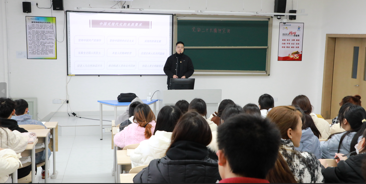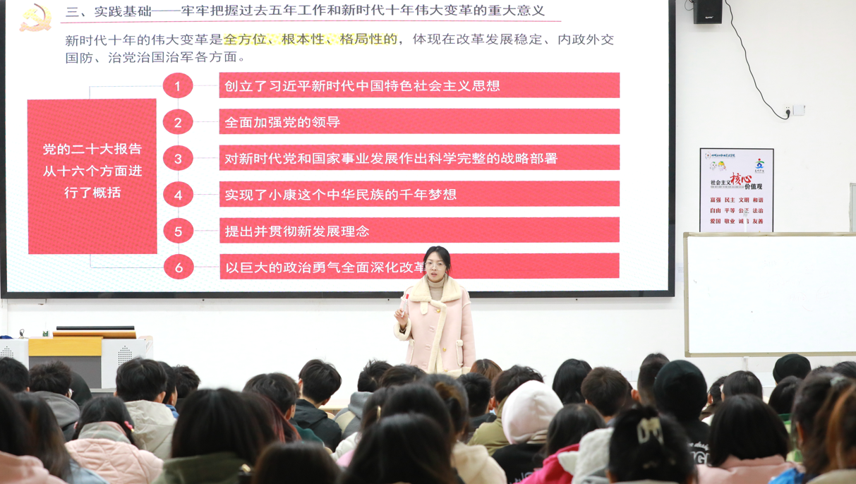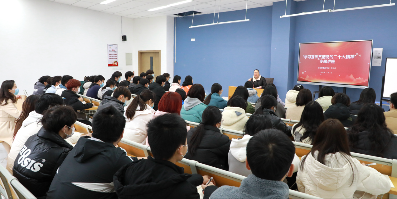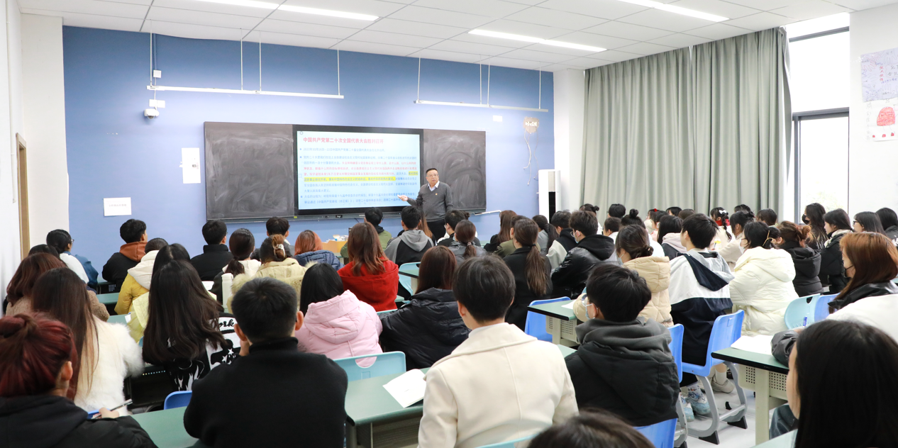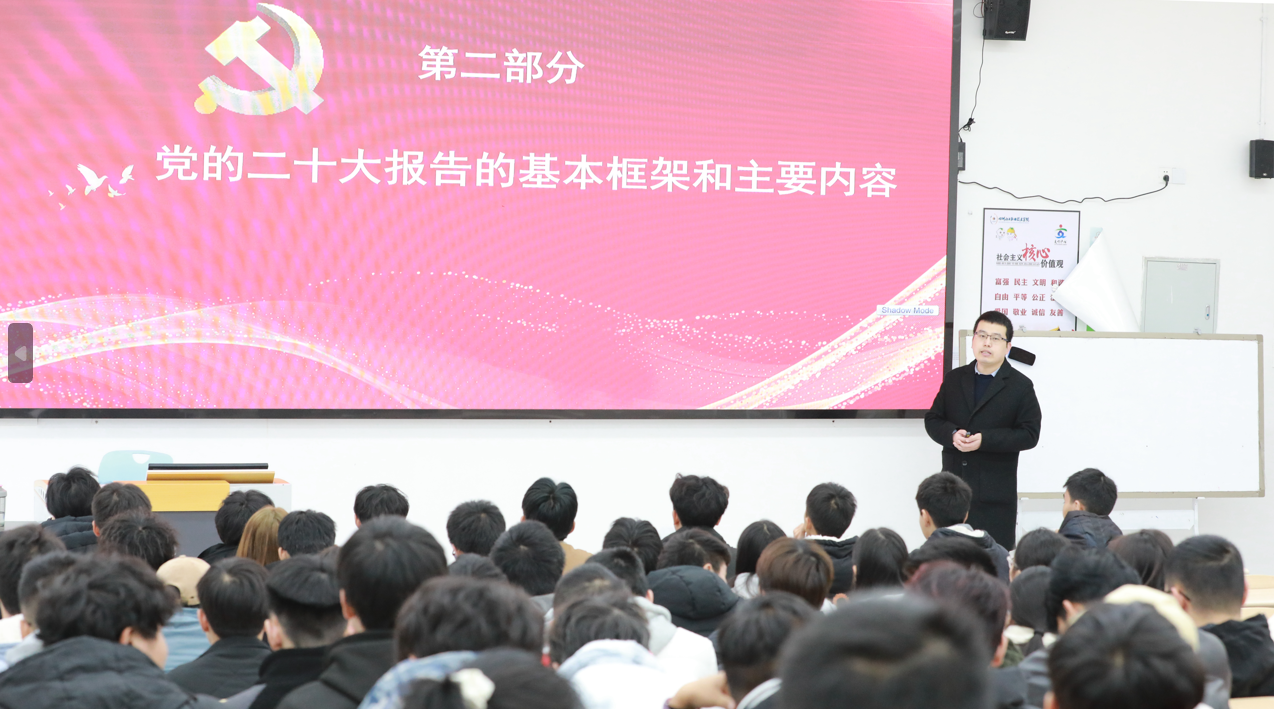 学校领导及老师们结合党的二十大报告,从过去五年工作和新时代十年伟大变革的重大意义、习近平新时代中国特色社会主义思想的世界观和方法论、中国式现代化的丰富内涵和本质要求、全面建设社会主义现代化国家的目标任务等方面对党的二十大报告进行了全面深入的讲授,并结合学校第三次党代会确定的学校发展战略、发展目标介绍了学校贯彻落实党的二十大精神的主要举措。领导和老师们希望青年同学们深刻领悟“两个确立”的决定性意义,坚决做到“两个维护”,坚定不移听党话、跟党走,怀抱梦想又脚踏实地,立志做有理想、敢担当、能吃苦、肯奋斗的新时代好青年。